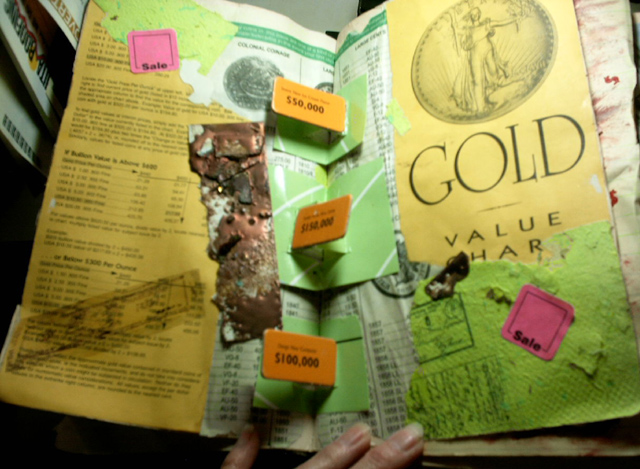 This entire spread was created from a junk mail ad, with the exception of the weed eater string and plastic crab.
